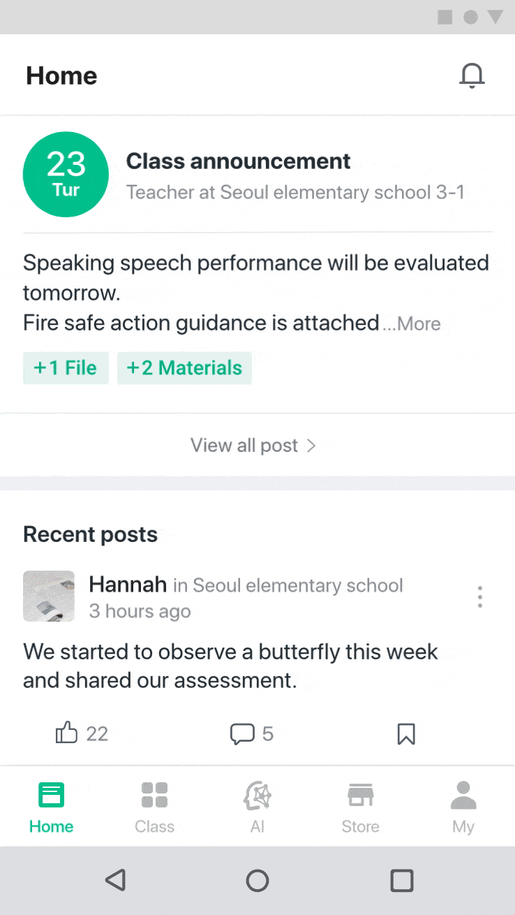 Classting App is an educational platform with more than 5.5 million users, including teachers, students, and parents. It has been adopted by more than 90% of schools in South Korea.