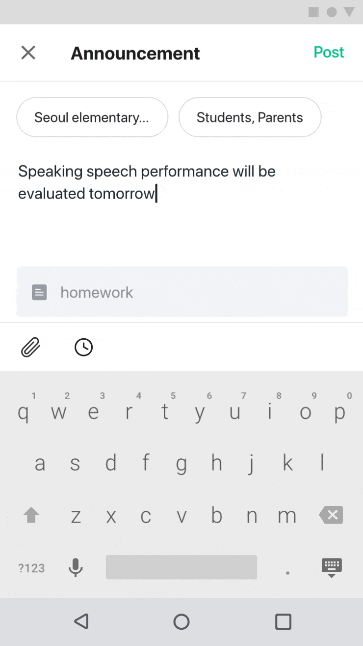 Users can distinguish school and class announcements at the tops of the titles. Users will intuitively recognise what they have to do through the checkbox and due date. This feature will lead users to view and remind them what needs to be completed.