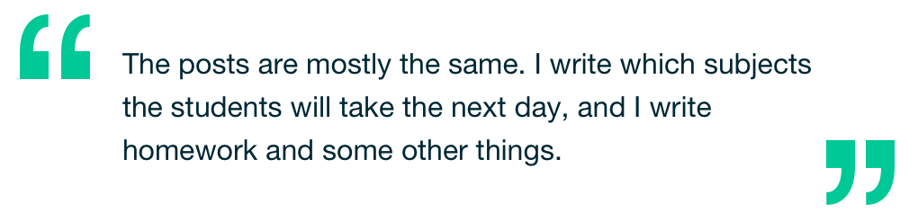 We have two target users - teacher and parent - utilising this announcement function, but the teacher user has a more important role. I interviewed three teachers to determine how and why they use this function. Furthermore, I gained information from teachers in their twenties and thirties who are familiar with using online education tools.