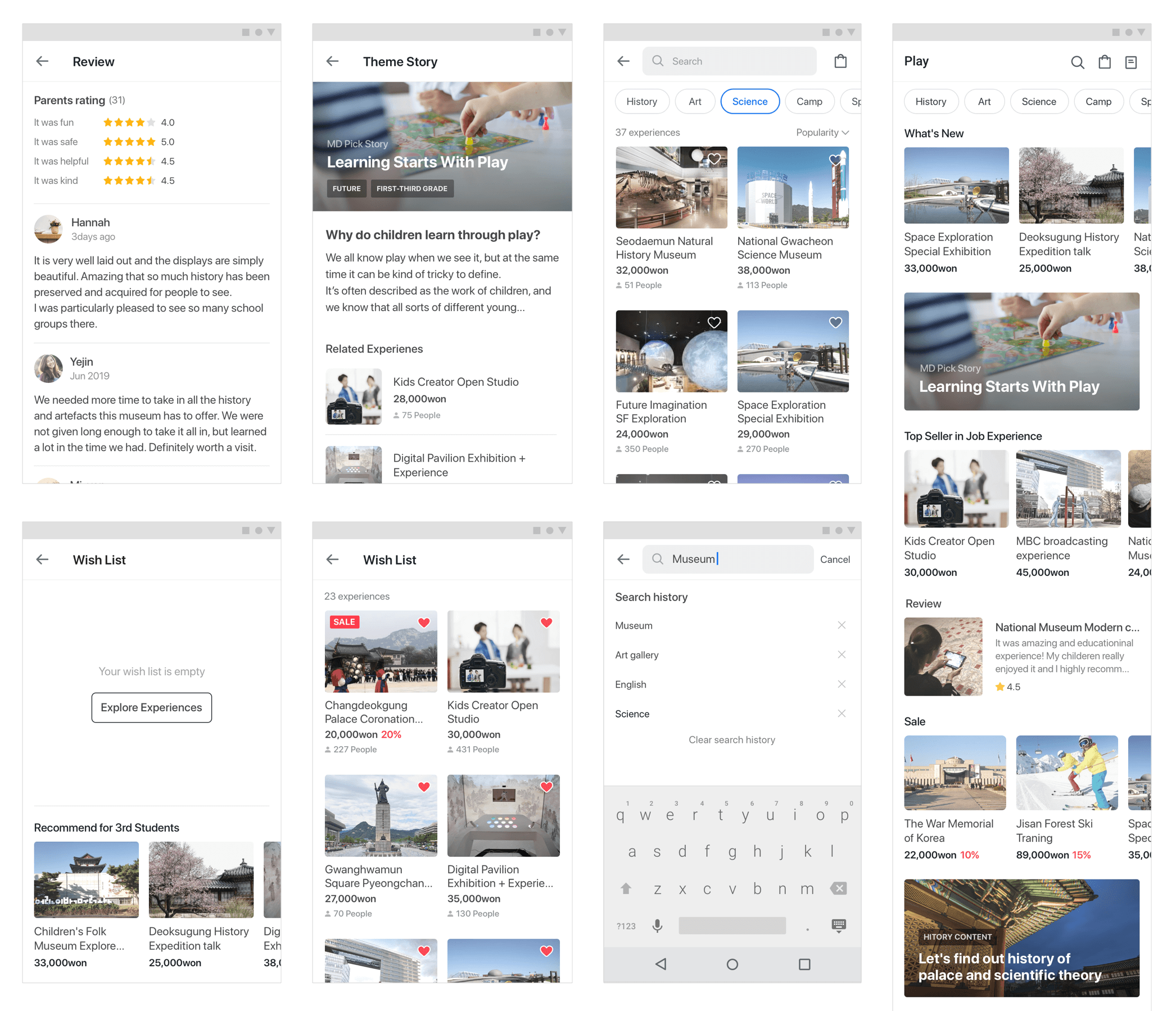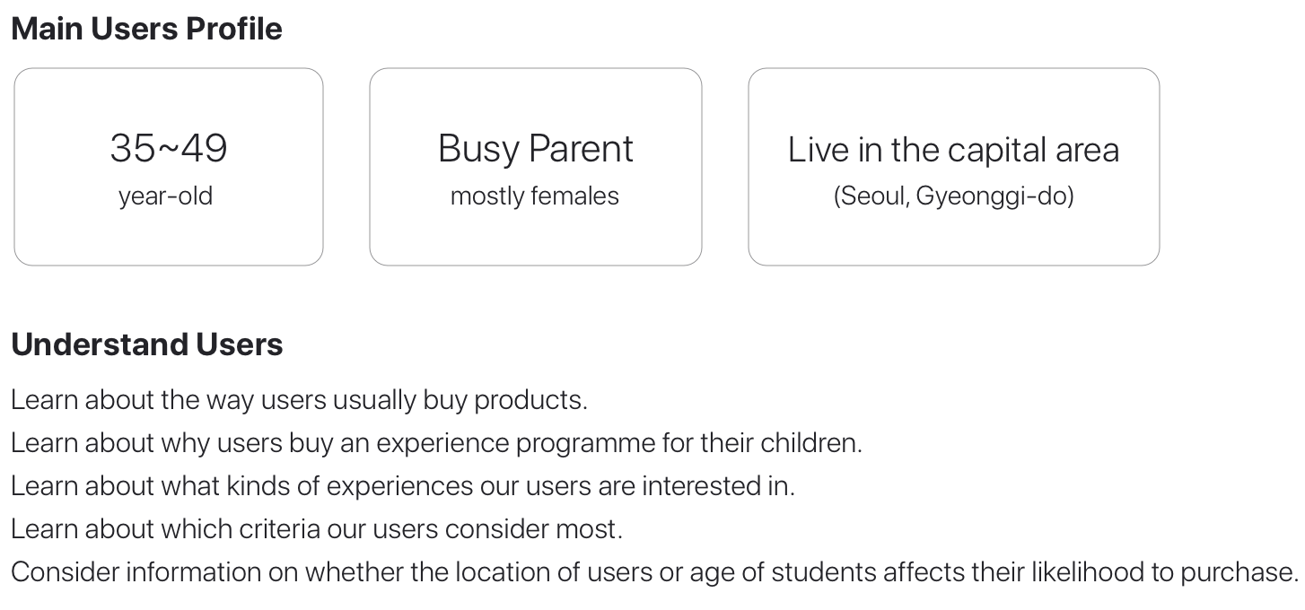 After we provided the ‘Children Experience’ service in the education app, we expanded the content as the number of customers increased. In addition, we decided to expand on the business goal, taking it from an educational experience activity to an online store. We aimed to improve the service experience before starting the next new business.